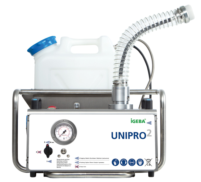Mit den mobilen Generatoren werden Räume und Fahrzeuge im Kaltvernebelungsverfahren mit Wasserstoffperoxid vollständig desinfiziert. Reduktion aller Bakterien und Viren um 99.99%.
